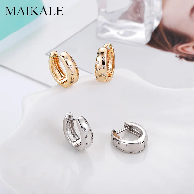 Женские маленькие медные серьги MAIKALE, простые серьги-гвоздики u-образной формы с фианитом класса ААА, золотого и серебряного цвета, подарочные серьги в Корейском стиле