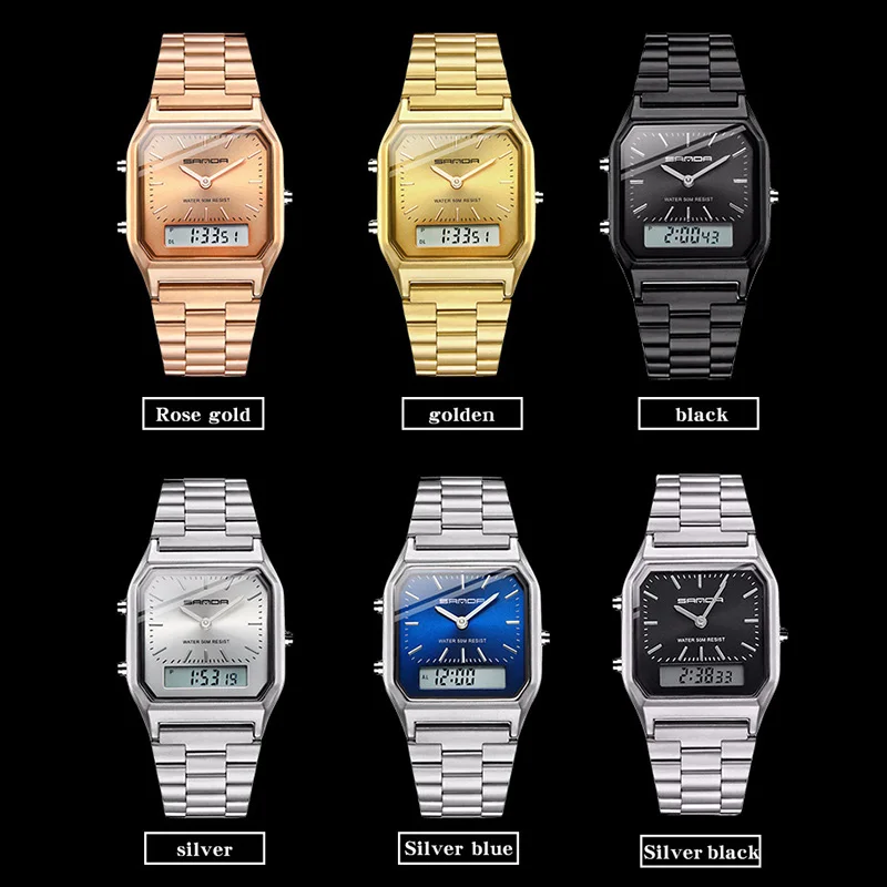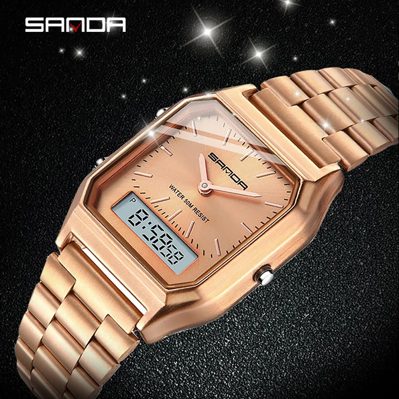 Модные водонепроницаемые женские часы с двойным дисплеем Аналоговые кварцевые наручные часы из розового золота спортивный светодиодный цифровой часы relogios feminino 2019