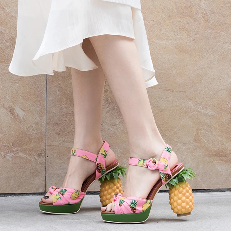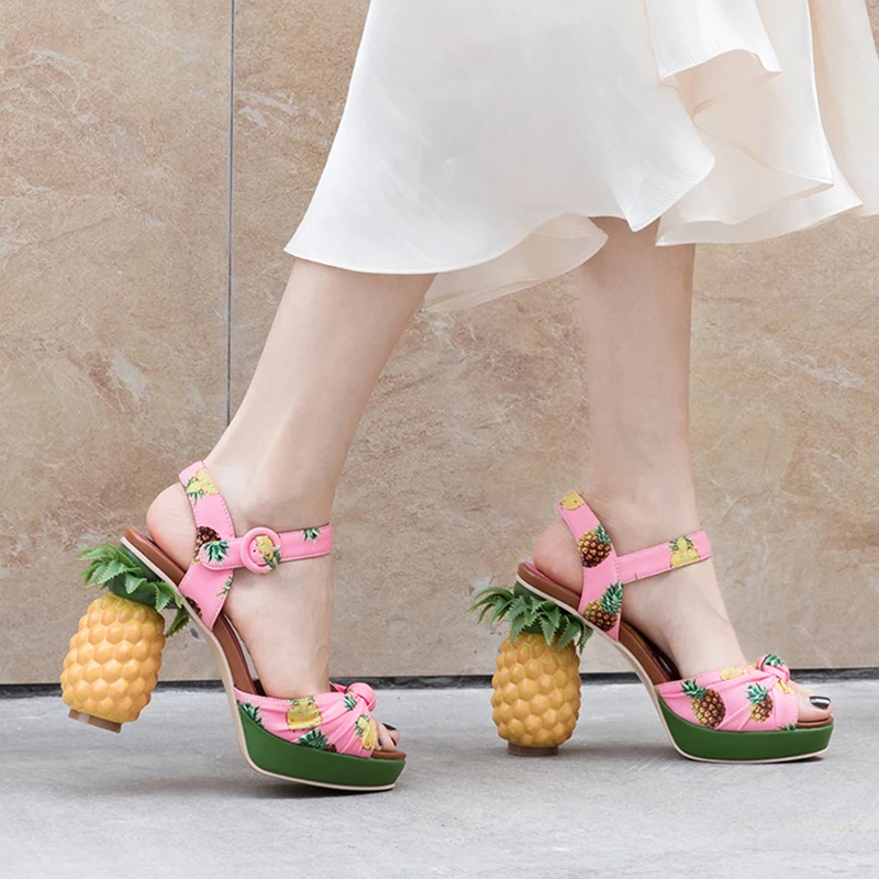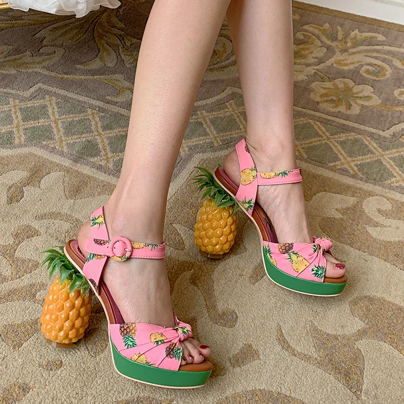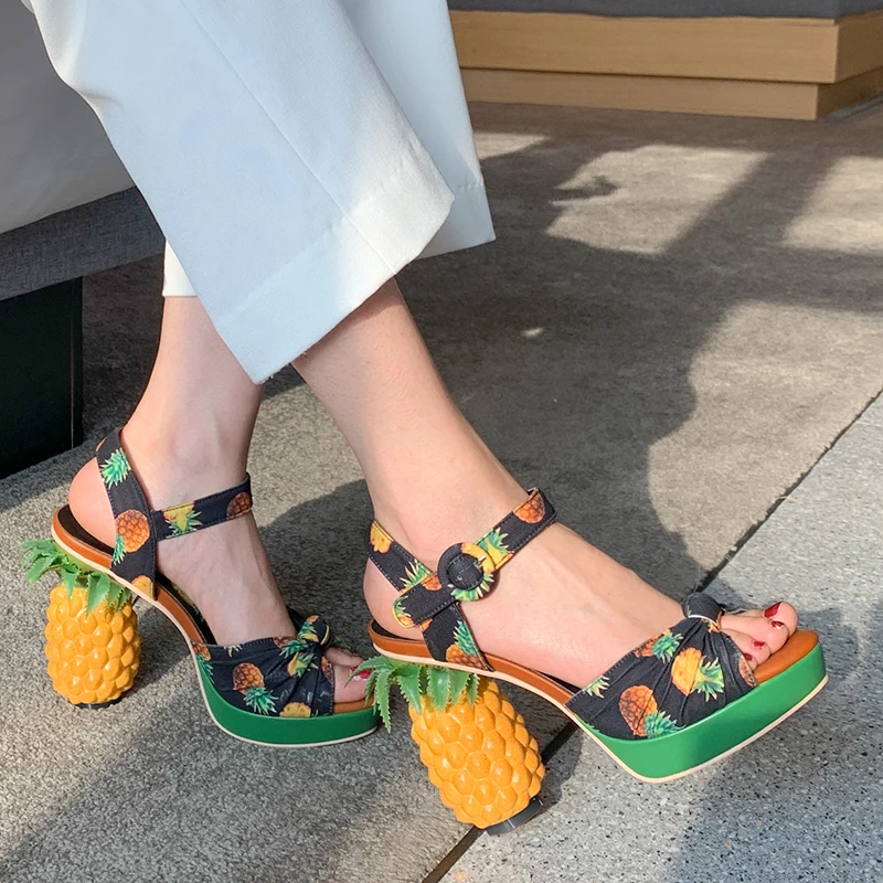 Босоножки женские Rimocy из натуральной кожи, на высоком каблуке 12 см, с принтом ананаса