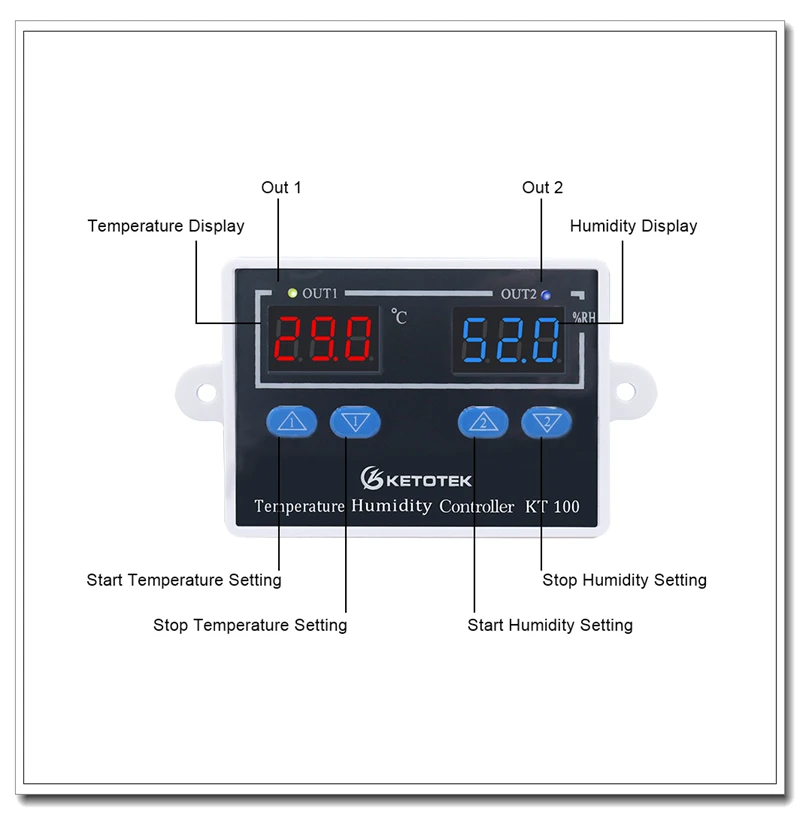 KT100 регулятор температуры и влажности, прямой выход, 120V AC -58 ~ 176 °F