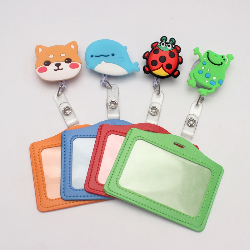 Силиконовый чехол с мультяшными животными для банковских карт, держатели для банковских кредитных карт, держатели для идентификационных карт в автобусе, бейдж с мультяшной выдвижной катушкой