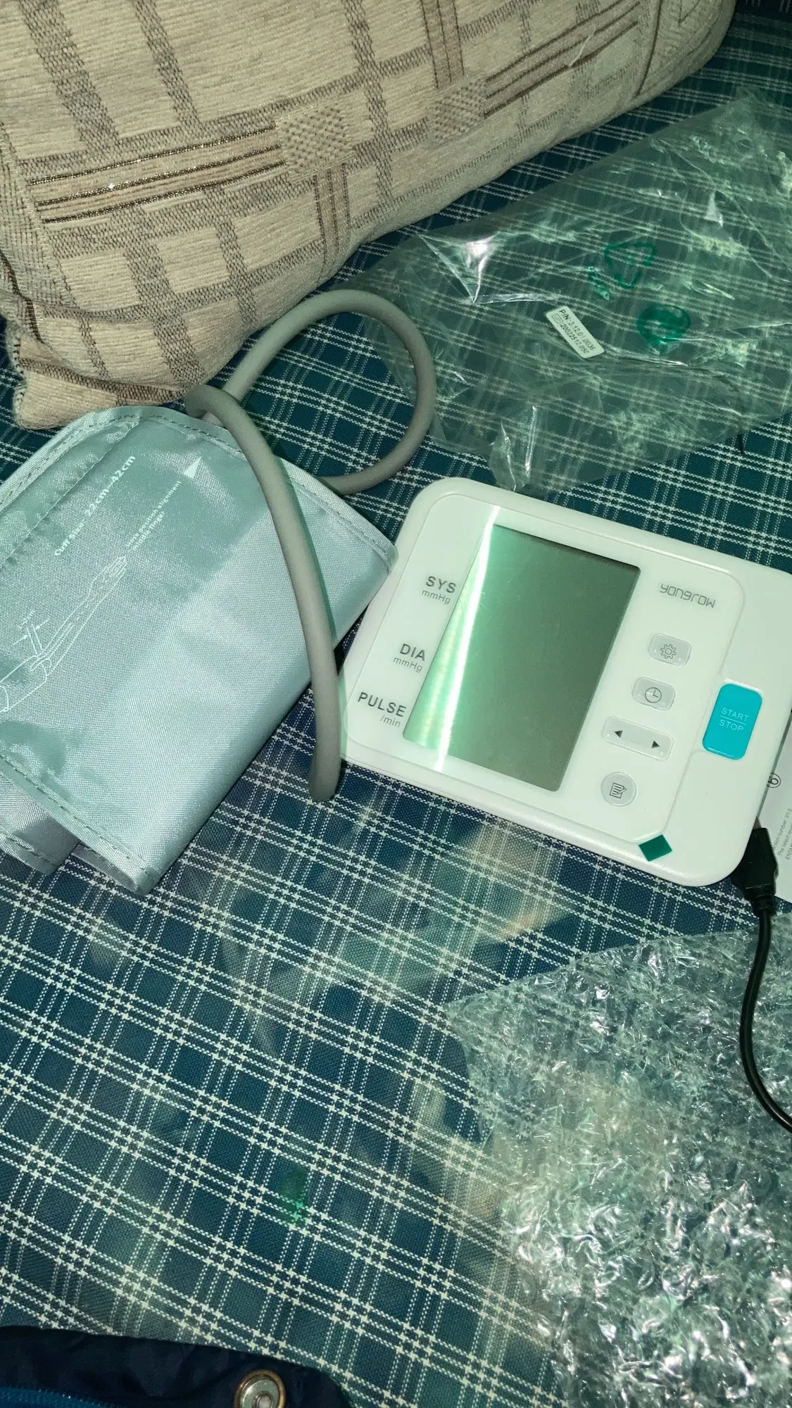 Доставка до квартиры за 6 дней! Всё работает, сравнивал показания с ручным, расхождения есть, но буквально в пару едениц. Монжета большая, удобная, держится хорошо. Жаль только, что нет чехла. Продавцу спасибо!