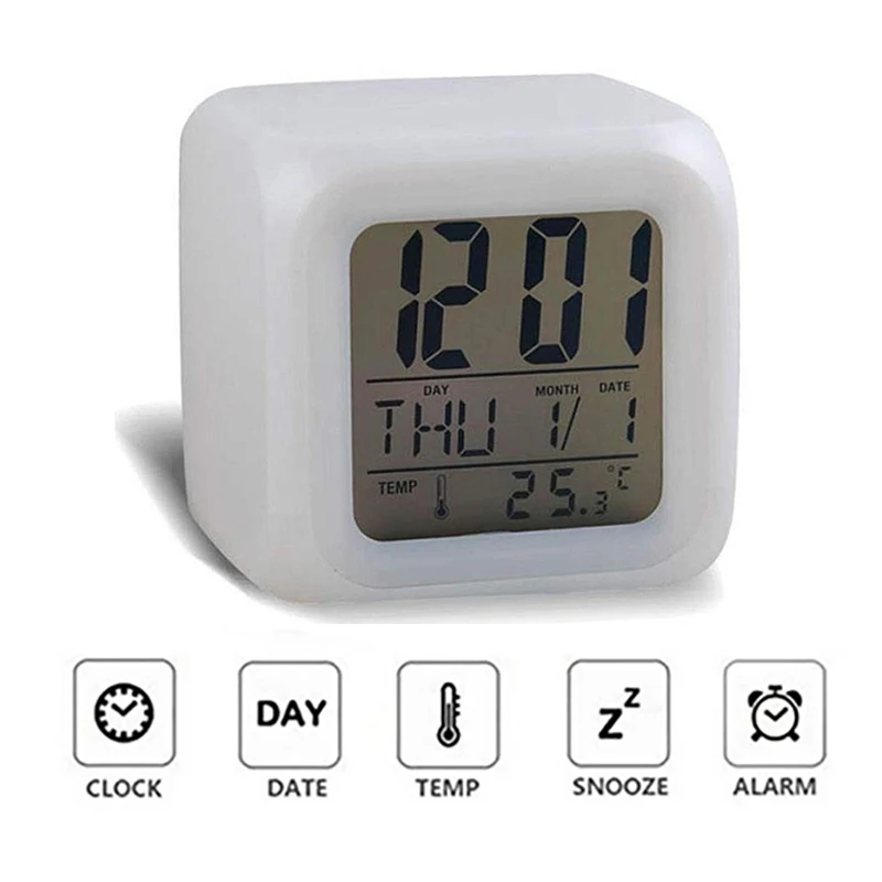 Цифровые часы-будильник, светодиодный светильник, 7 цветов