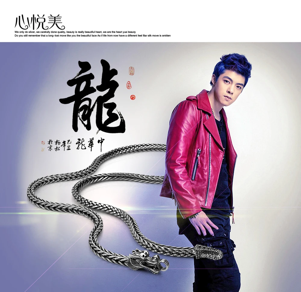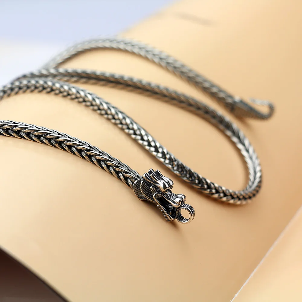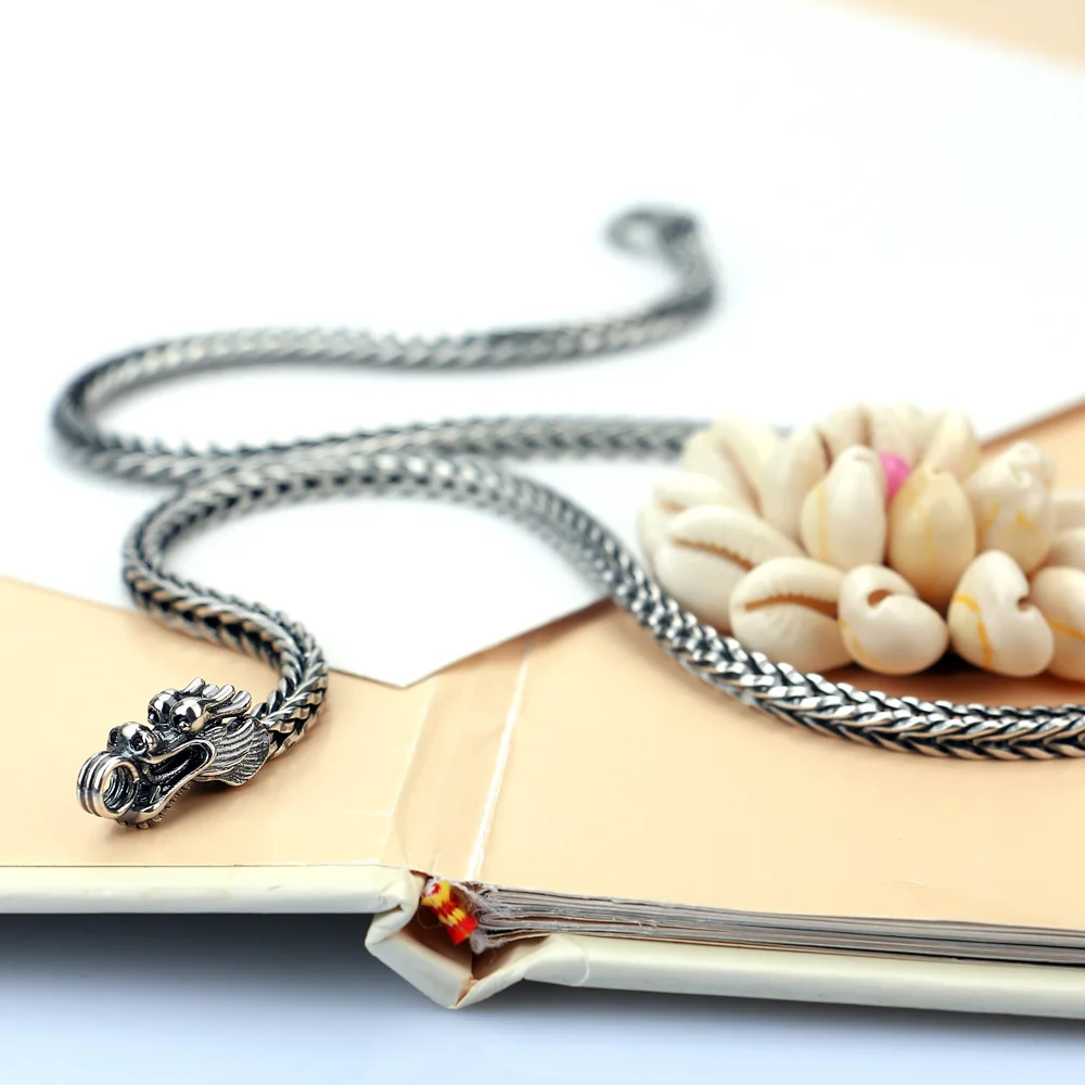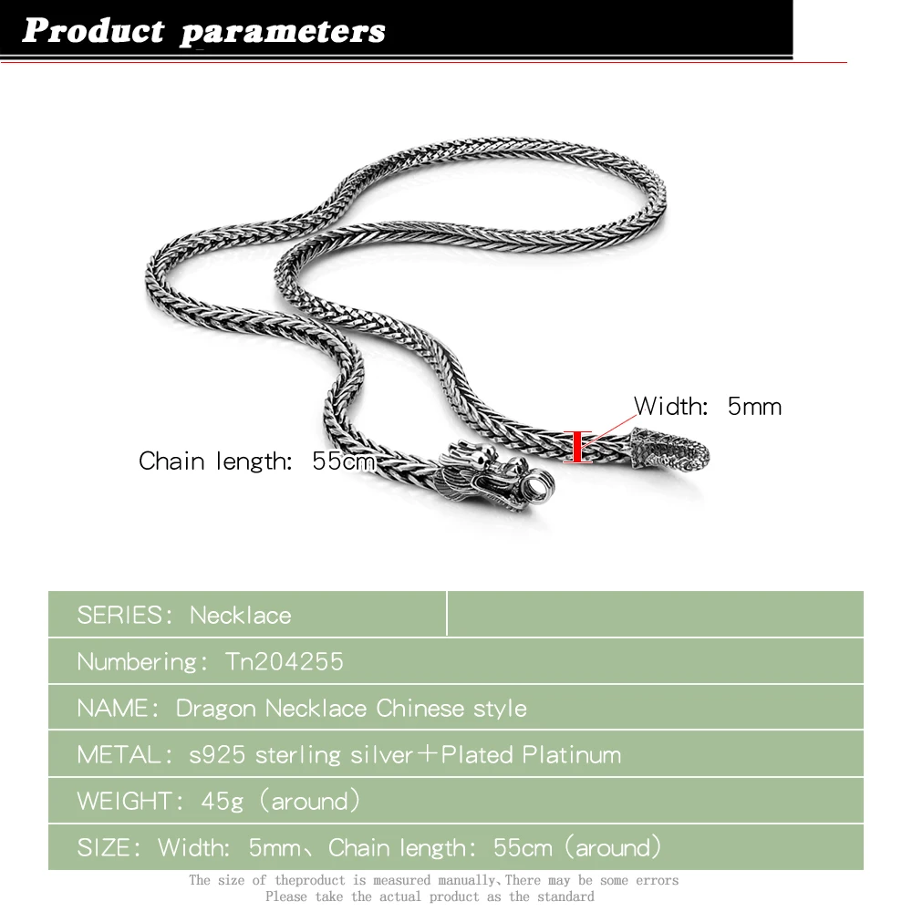 Ожерелье из тайского серебра 925 пробы для мужчин, популярное ювелирное изделие из 925 пробы серебра с этническим драконом, 56 см61 см66 см