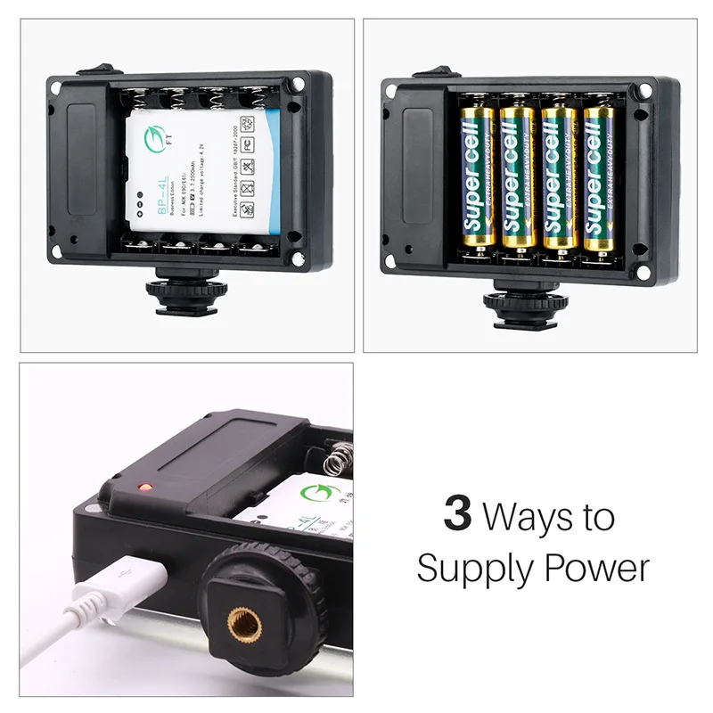 1. Usb-порт только для зарядки. Не включайте светильник напрямую с помощью usb-кабеля, иначе это повлияет на срок службы светильник! И если вам нравится использовать USB, вам нужно сначала поместить совместимый BP-4L батарею в светильник (не может поддерживать Аккумуляторы AA).2. Может работать с камерой Sony, но сначала вам может потребоваться приобрести мини-Горячий башмак отдельно.