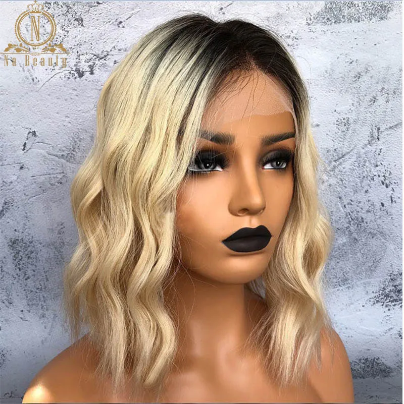 Парики короткие Боб 1B 613, предварительно выщипанные, волнистые, HD, с прозрачной сеткой спереди, парики из натуральных волос T-образной формы, парик на сетке для женщин Na Beauty 150