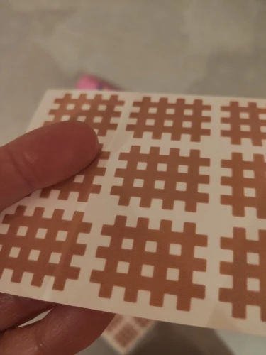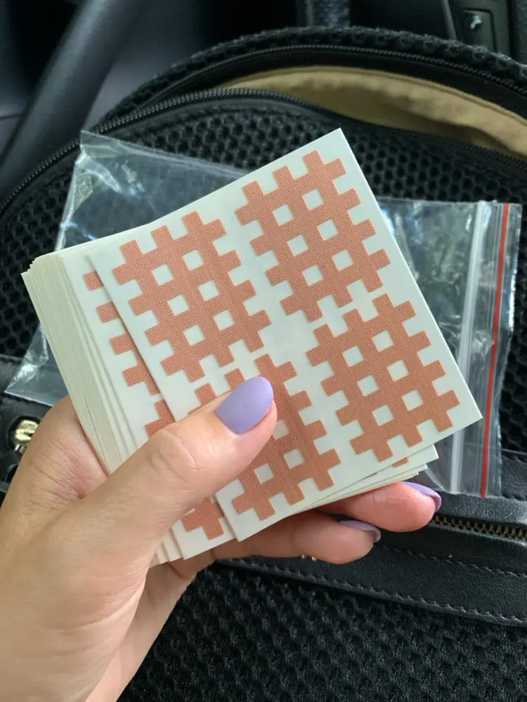 Кросс тейпы очень хорошие. Ткань не хлопок, а наверное шёлк или под него. Держаться хорошо. Главное уметь ими пользоваться. Лучше пройдите курсы 2 профессионалов или посмотрите видимо в интернете, но не верьте тем кто их режет. Их ни в коем случае нельзя разрезать и клеить как хочешь. Ещё и направление нужно знать. Продавец в подарок вложил кусочек кинезиотейпа.
