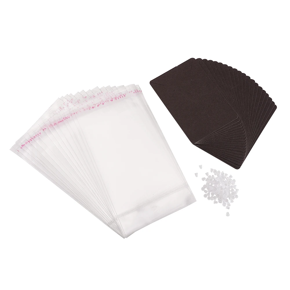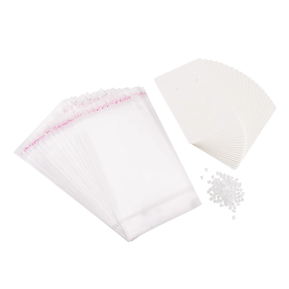 100 шт. бумажные витрины для ювелирных украшений, прямоугольные пластиковые гайки для ушей, Опп целлофановые пакеты, черный, белый, бурливуд, 90x60x мм