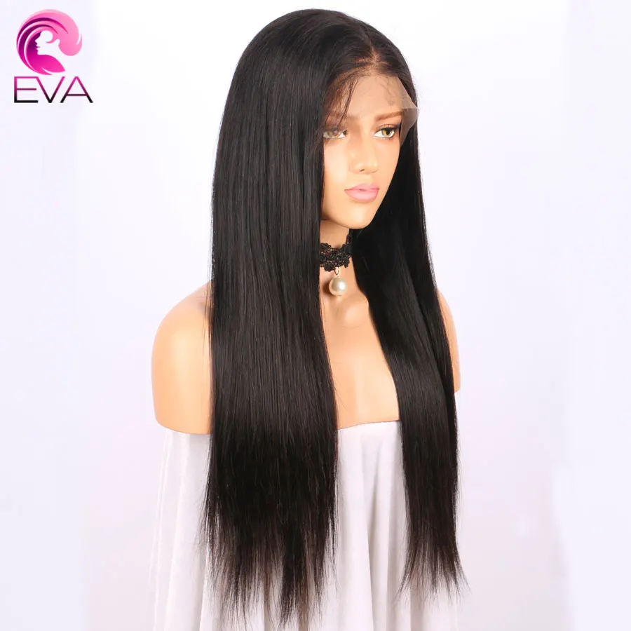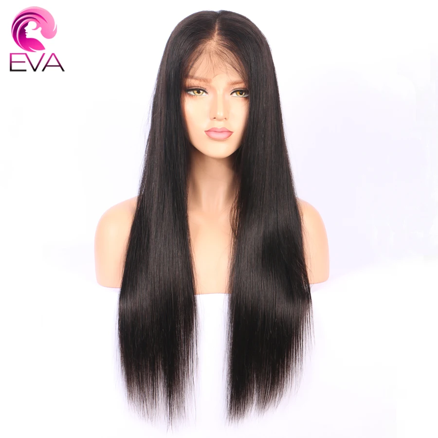 Парики из натуральных прямых волос Eva, предварительно выщипанные с детскими волосами, бесклеевые, для чернокожих женщин, бразильские волосы Реми