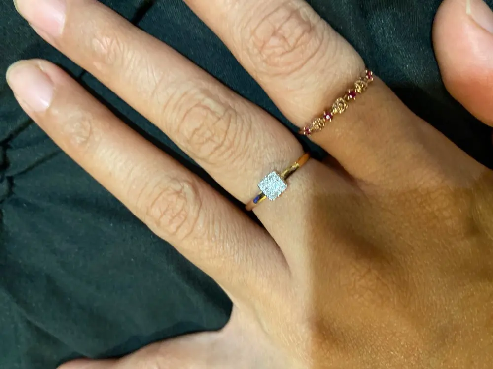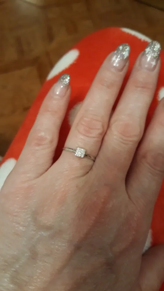Кольцо потрясающее, полностью оправдало мои ожидания, да, оно правда меньше чем на фото продавца. Но на длинных тонких пальцах смотрится оч красиво, при точечном освещении, очень блестят камушки. Со стороны ладошки кольцо немного сужается. Размеры совпадают,на свой 17 брала 7,всё подошло. Продавцу большое спасибо, за быструю отправку