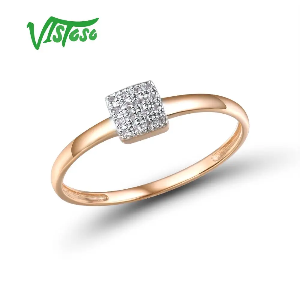 Женское кольцо с квадратными камнями VISTOSO, розовое и белое золото 14 к 585 пробы, со сверкающими бриллиантами, модные ювелирные украшения из драгоценных камней для юбилея и Помолвки
