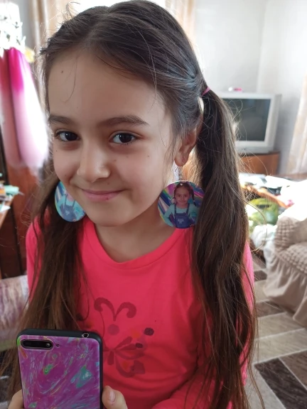 Заказывала себе и сестрёнке. Качество потрясающее! Изображение отпечатано качественно, чётко - видно все детали и надписи Сами серьги невесомые. Просто безумно довольны