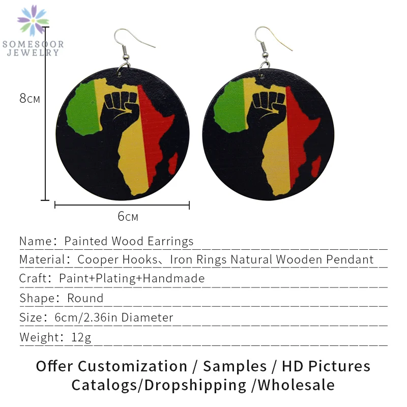 Индивидуальные деревянные висячие серьги SOMESOOR, 6 см, Африканский негр, ювелирные изделия с индивидуальным принтом, нет минимального заказа для чернокожих женщин, подарки 1 пара