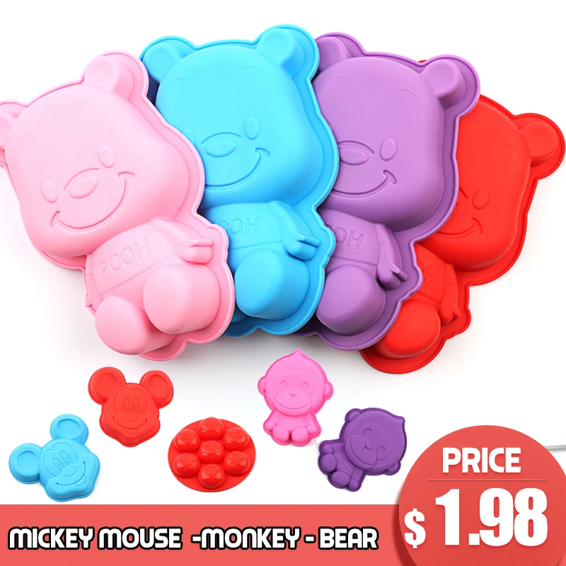 Силиконовая форма 3D в виде милого медведя, инструменты для выпечки, кухонные резаки для мастики, смайлик, декоративные силиконовые формы, 3D новинка