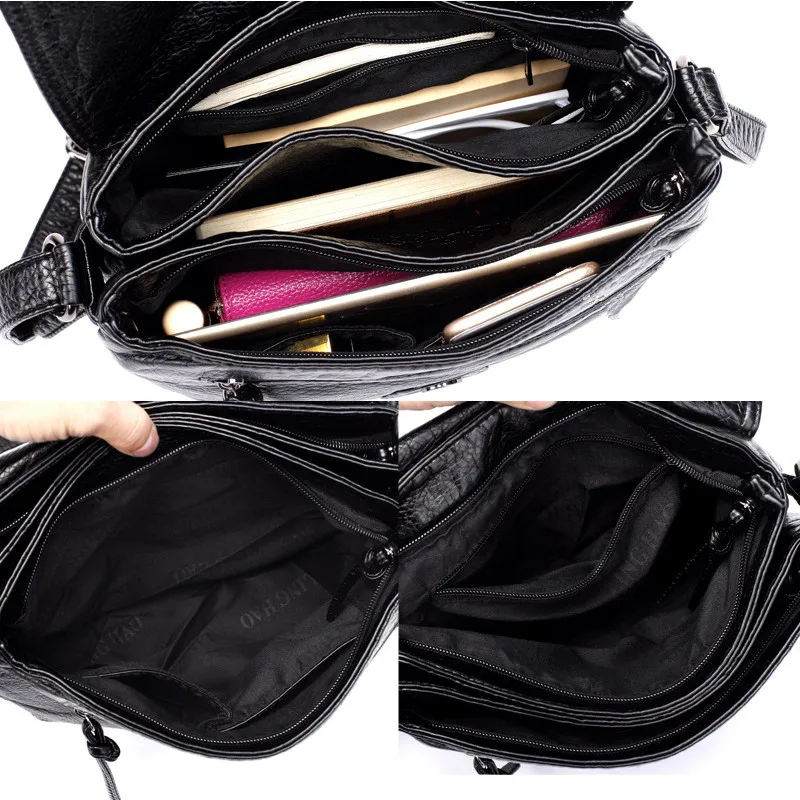 Сумка-мессенджер SWDF женская из мягкой потертой искусственной кожи, Черный Саквояж кросс-боди, кошельки