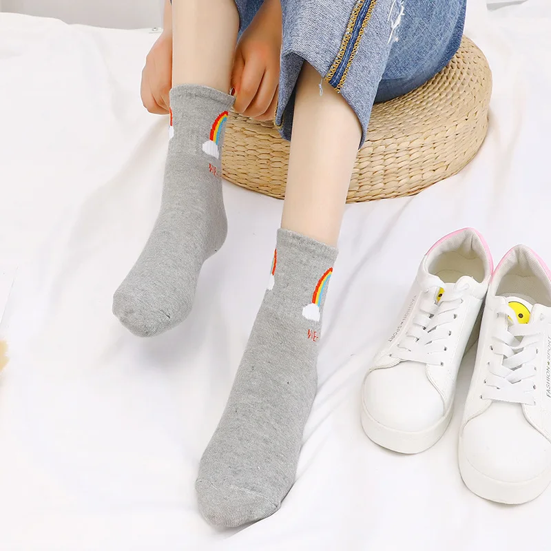 SP CITY, простые радужные Короткие Носки с рисунком, женские милые повседневные дешевые носки для колледжа с рисунком