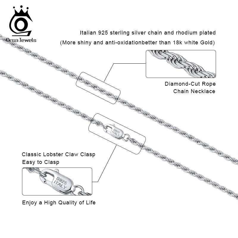 Цепочка на шею для мужчин и женщин ORSA JEWELS, серебро 925 пробы, 1,2 мм, 1,5 мм, 1,7 мм