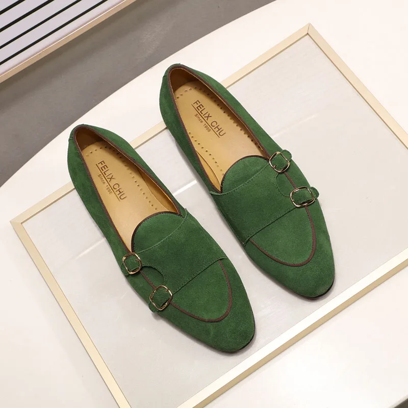 Модные дизайнерские Замшевые мужские лоферы; Цвет черный, коричневый, зеленый; Повседневные модельные туфли для свадебной вечеринки; Мужские туфли с ремешком; Размеры 39-46