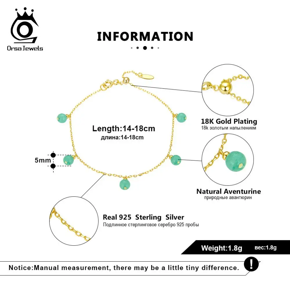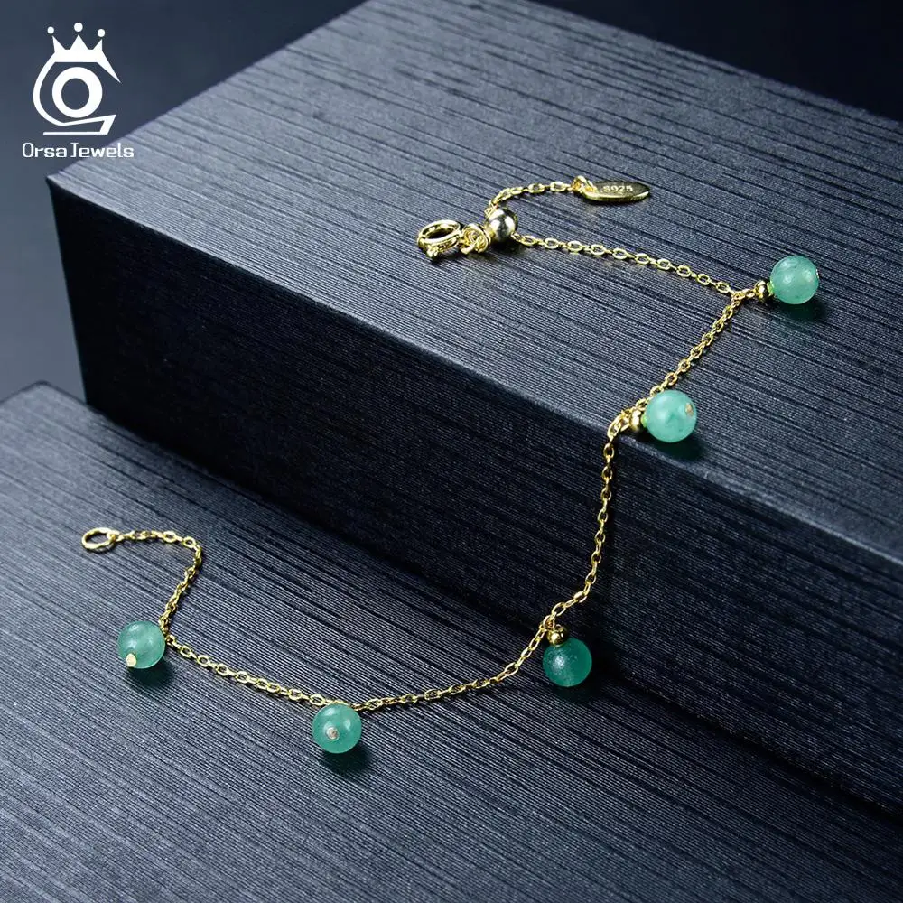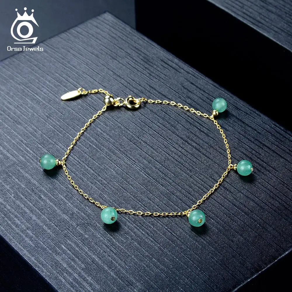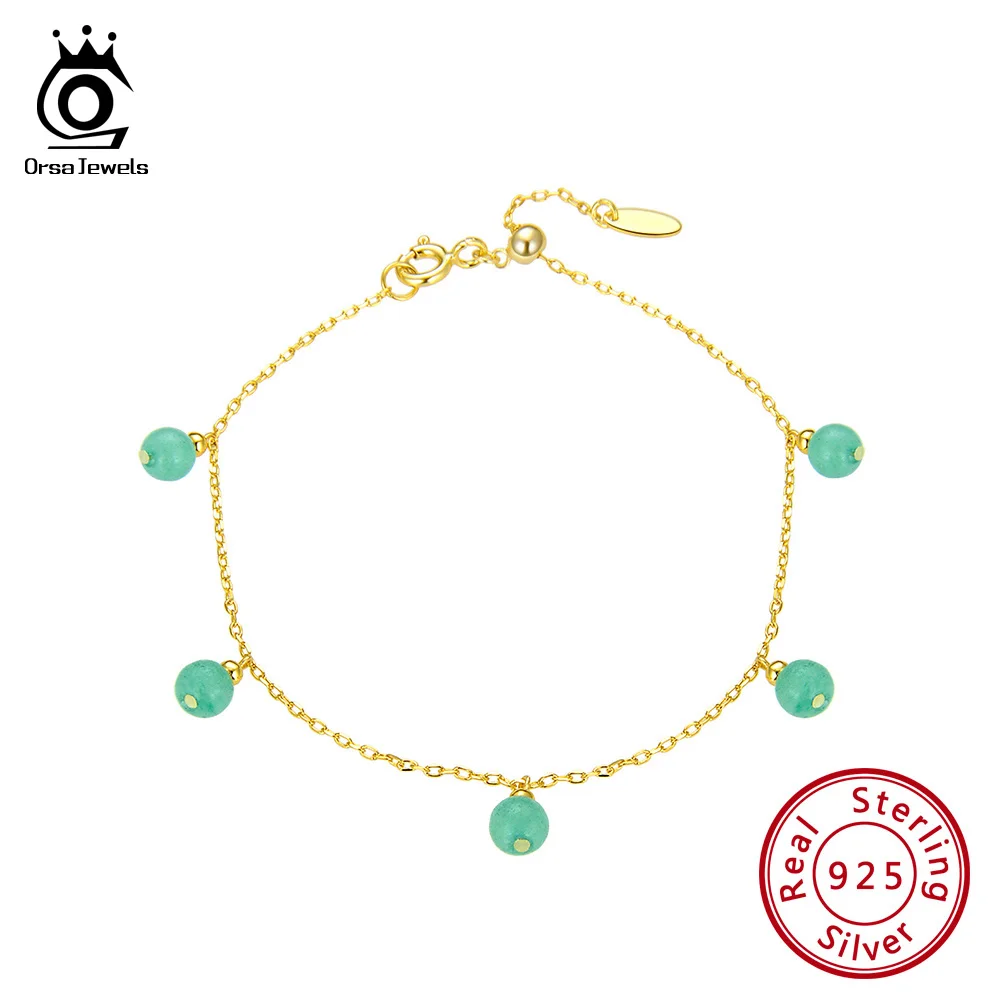 ORSA JEWELS Стерлинговое серебро женские браслеты Красный Зеленый Натуральный камень Бусины регулируемый браслет 18K Позолоченные ювелирные изделия подарок OSB45