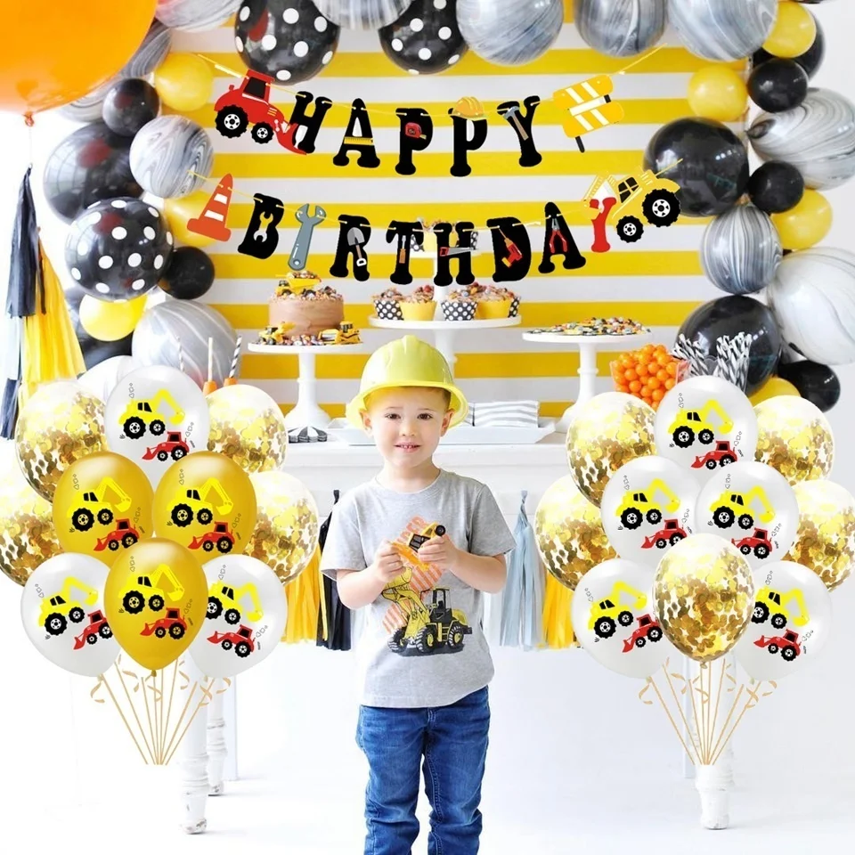 Строительный трактор надувной воздушные шары на день рождения экскаватор баннеры для автомобиля детский душ Детский день рождения, день рождение мальчика товары Вечерние