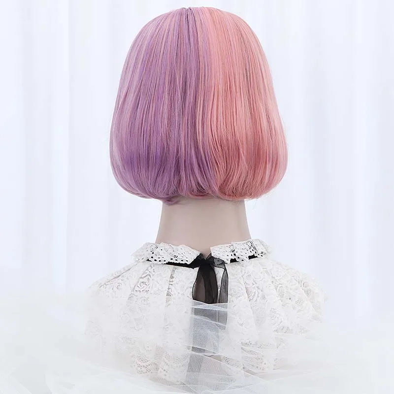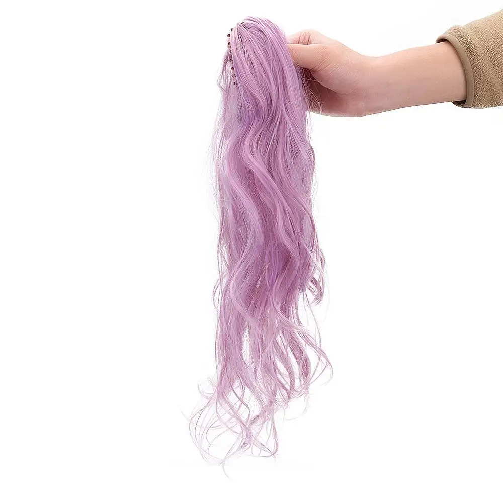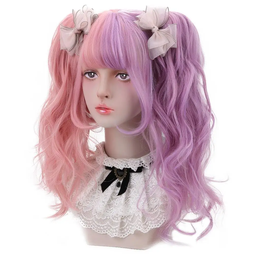 Женский удлинитель для волос Лолита, термостойкий синтетический волос с 2 зажимами, с челкой, цвет фиолетовыйрозовый, с эффектом омбре, 12 дюймов, для косплея