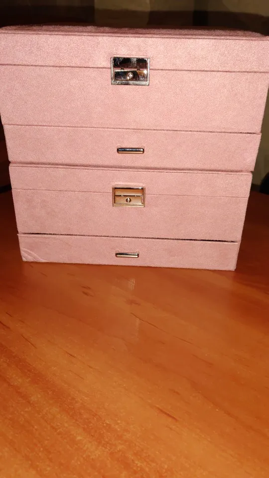 Хорошая, вместительная шкатулка для разных украшений. Мне она из многих вариантов понравилась больше всего, так как есть ячейки под небольшие изделия, целая плашка для колец, большой отсек под браслеты, часы и пр. Эта «комплектация» для меня самая подходящая, больше всего у меня серёжек, а тут под них места предостаточно. Качество не наивысшее, подозреваю, что может быстро затереться тканевая обивка. Нижний выдвижной ящик не плотно прилегает, когда его задвигаешь. В целом, хорошая шкатулка, она намного удобнее тысячи мелких шкатулочек, тут все в одном месте, все под рукой. Ну и нельзя не отметить красивый розовый цвет, спокойны и благородный. Все как любят девчонки)) p.s. Внутренний отсек под плашкой для колец не сфоткала