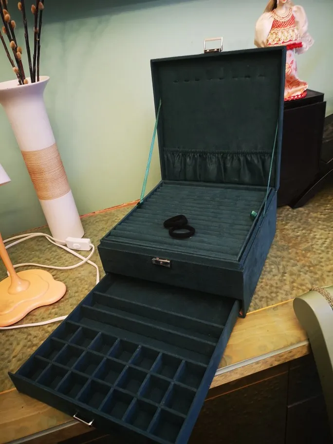 качественная большая шкатулка. есть ключик. много отделений. Наконец-то мои украшения будут в порядке