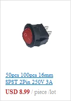 50 шт. 100 шт.лот KCD1-105 2-контактный 16 мм SPST 250 В 3A маленький Электрический кнопочный переключатель ВКЛ ВЫКЛ