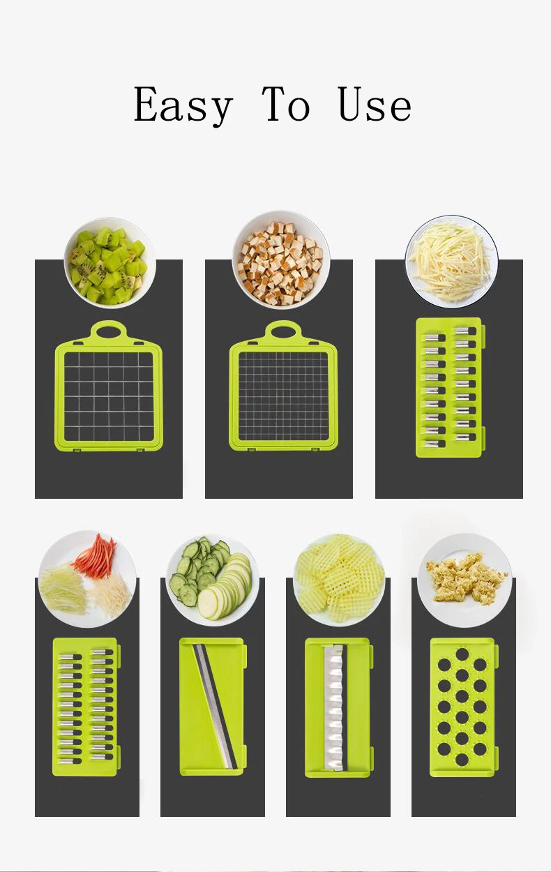 Овощерезка 8 в 1, лезвия из нержавеющей стали для нарезки кубиков, ...