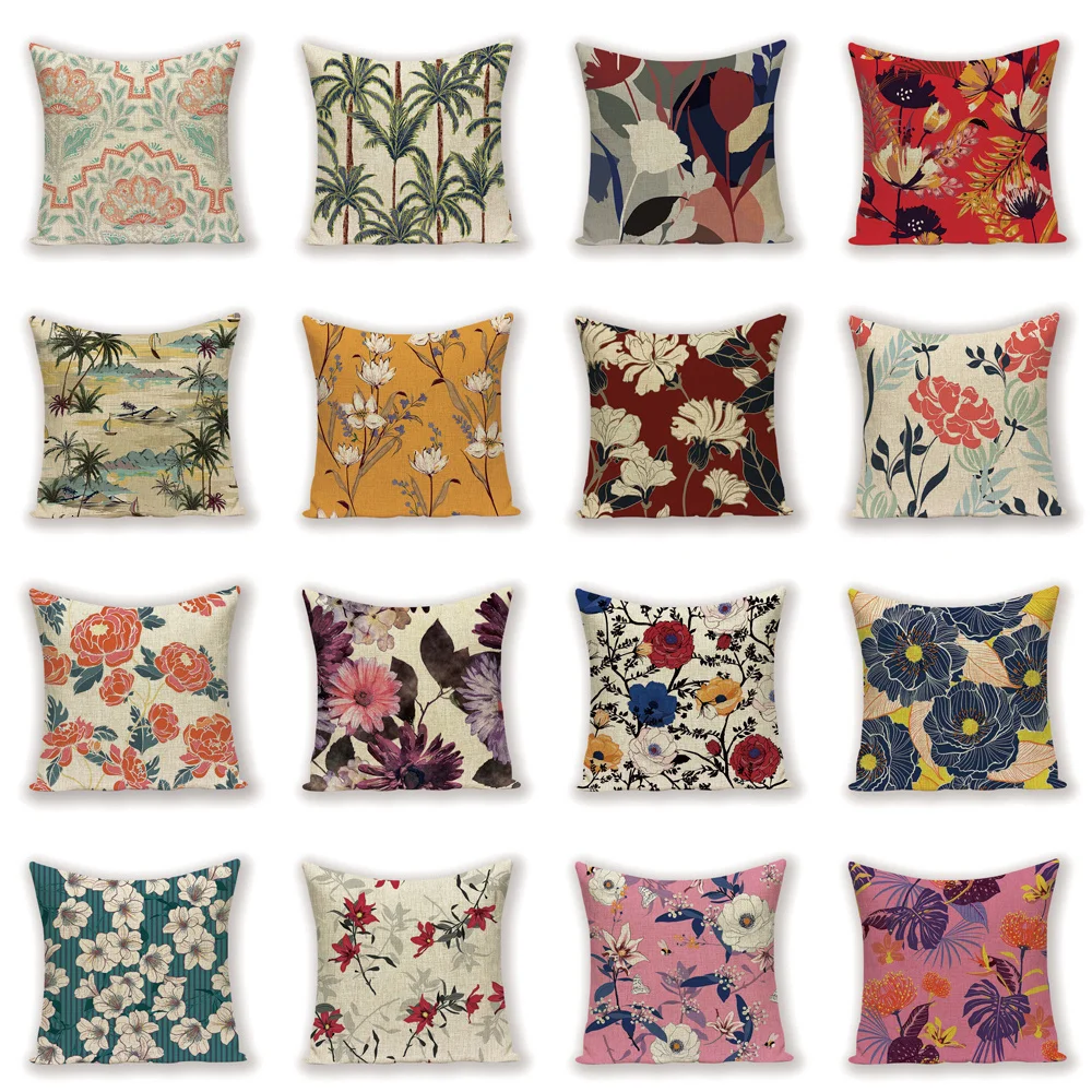 Наволочка для подушки с растениями, Цветочная подушка, льняные наво...