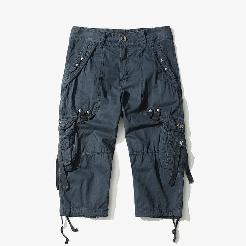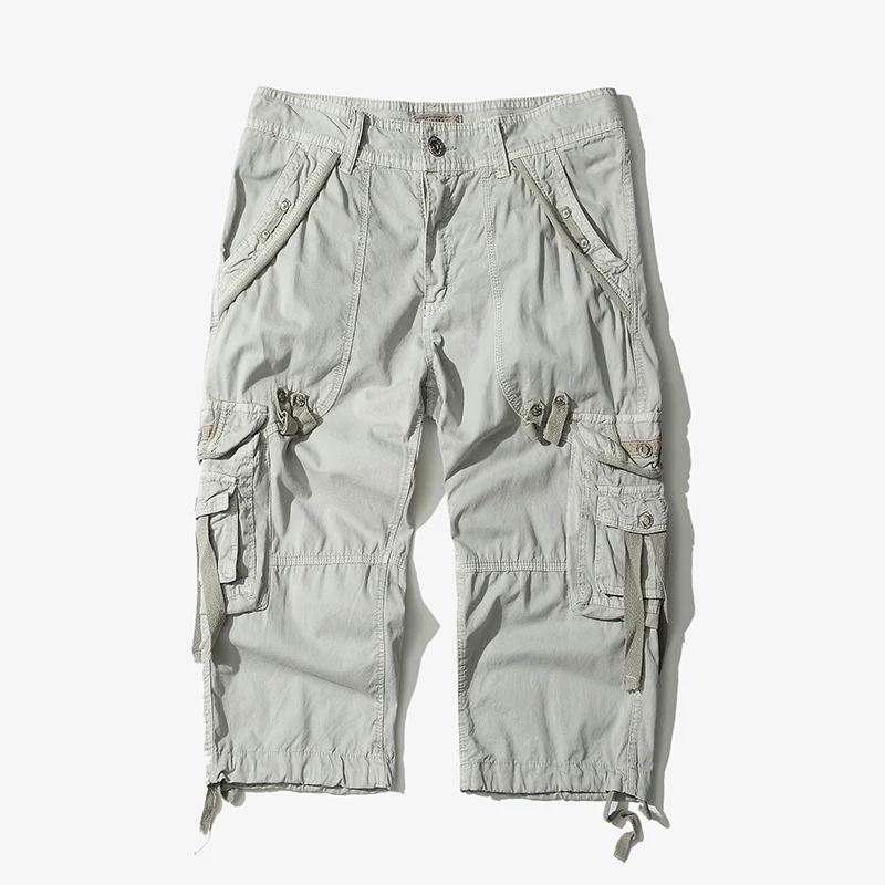 Шорты-карго мужские длинные с карманами до колена, хлопковые повседневные бермуды с эластичным поясом, армейские капри в стиле милитари, лето 2018