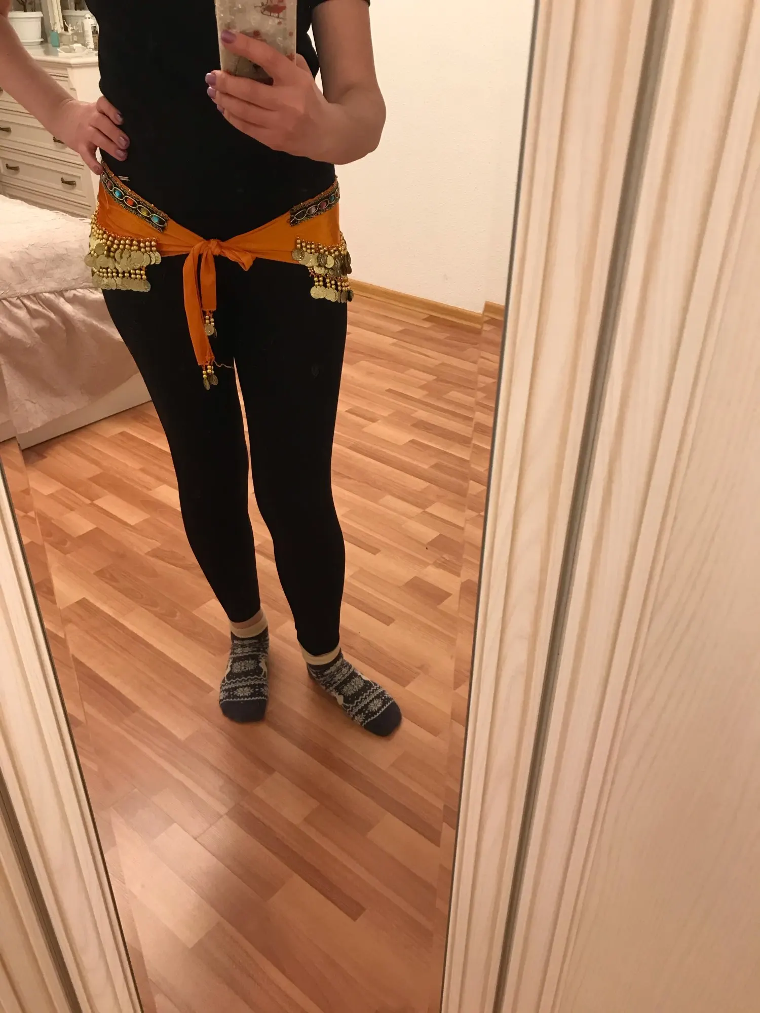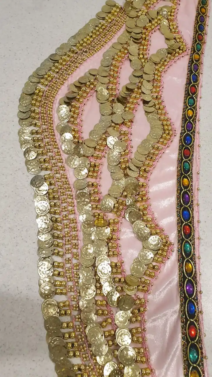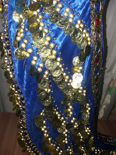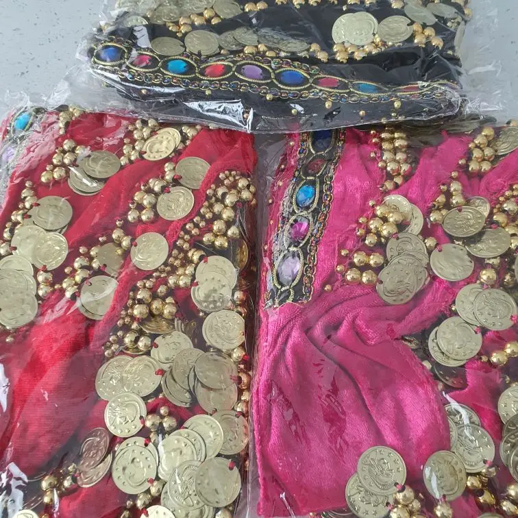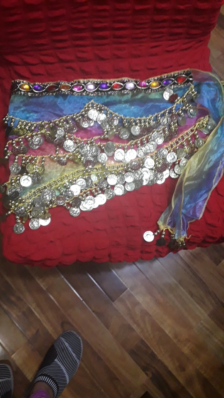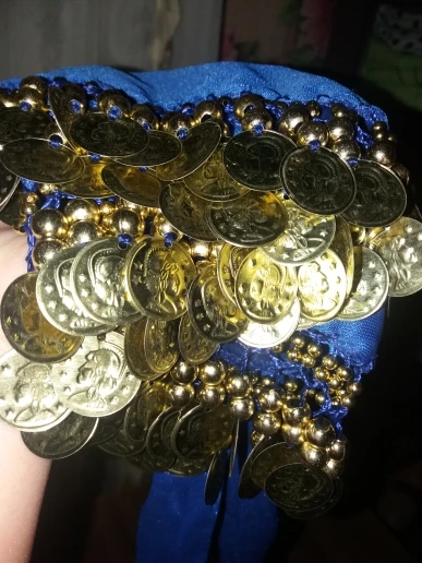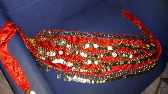Неплохой пояс. Монетки пришиты не очень крепко, стирать страшно. Запах очень сильный.