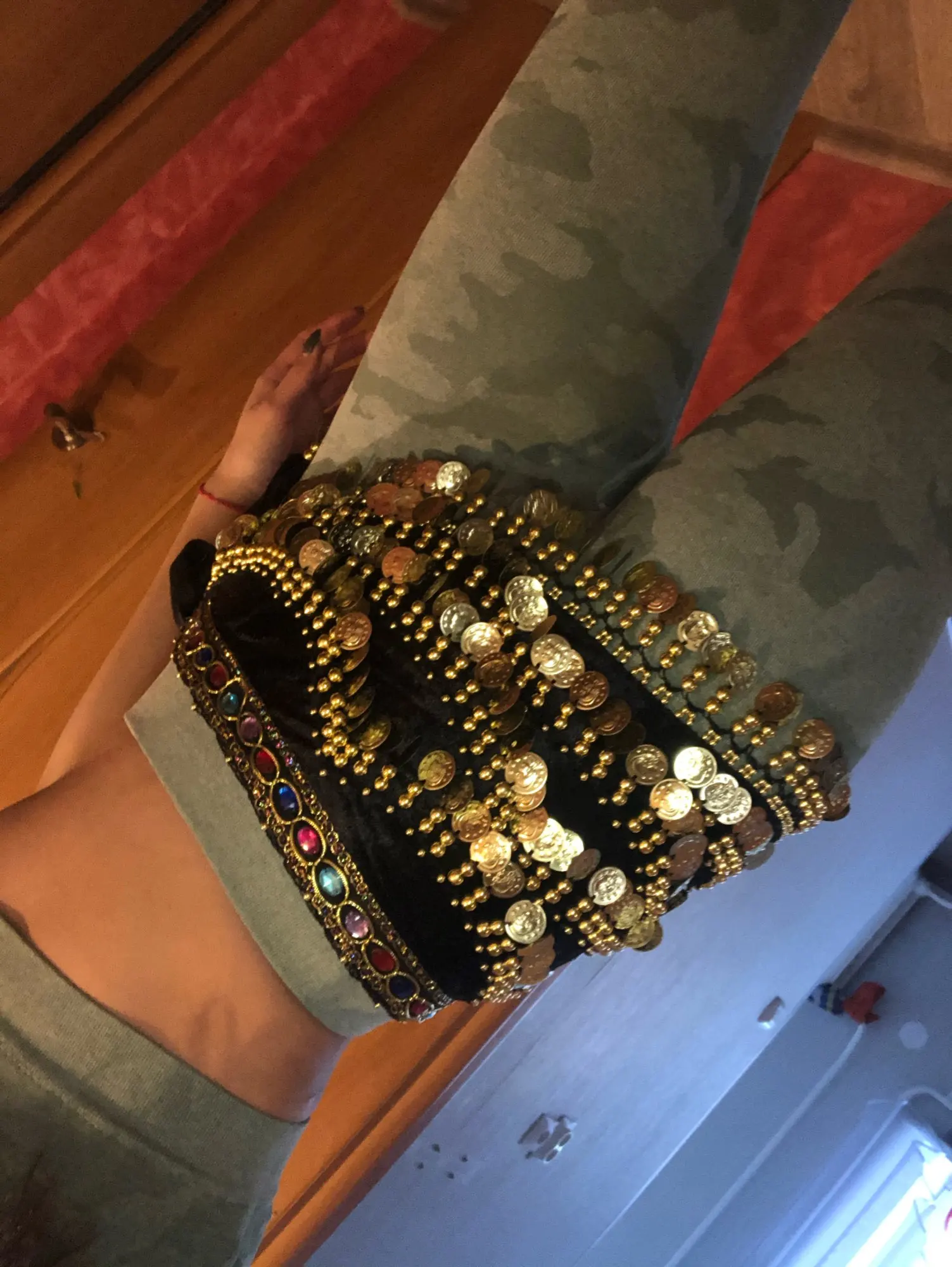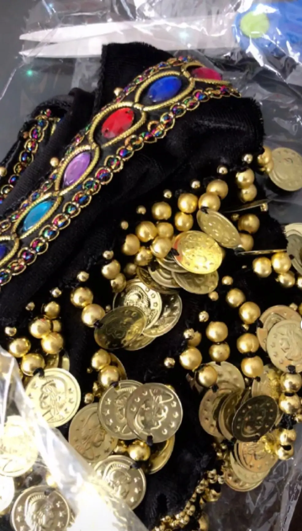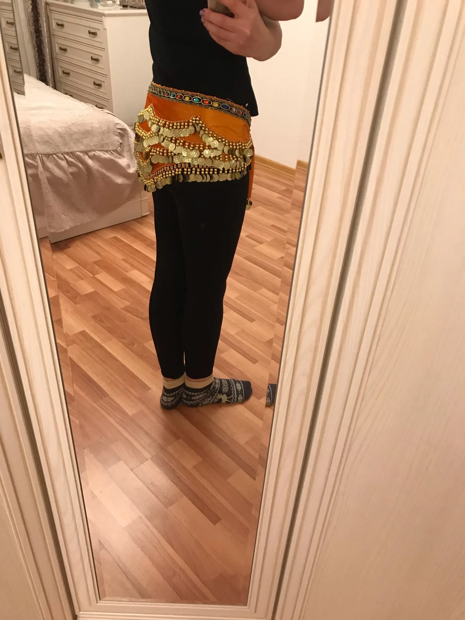 Неплохой пояс. Монетки пришиты не очень крепко, стирать страшно. Запах очень сильный.