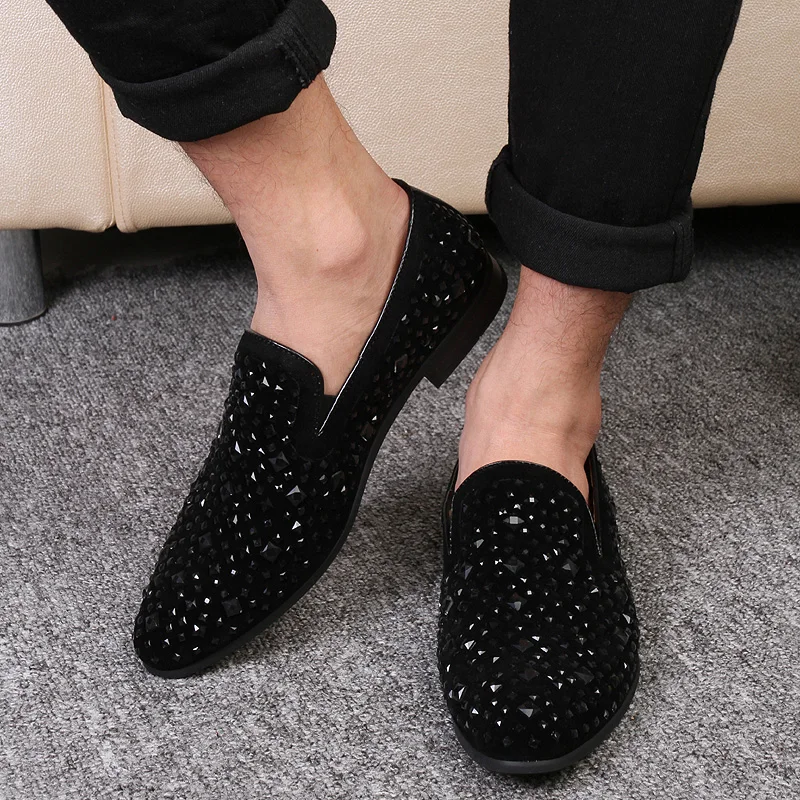 Квавар блестящие, ручной работы с украшением в виде кристаллов обувь для мужчин на плоской подошве; Мужские бархатные Лоферы со стразами роскошные стразы благородные мужские Туфли под платье Свадебные выполнения обувь