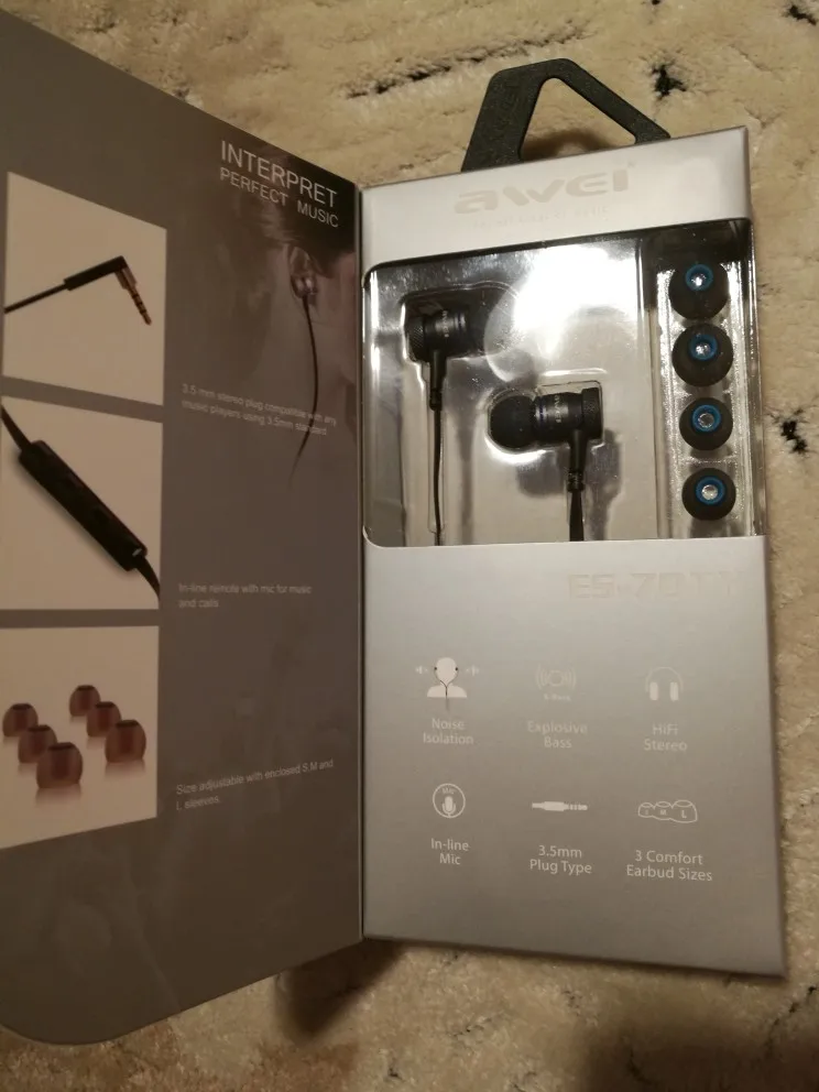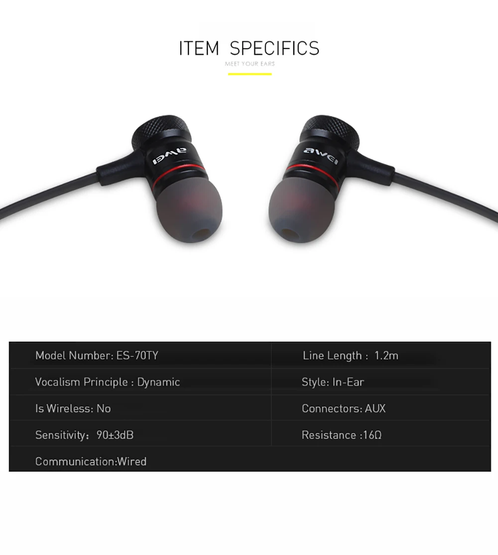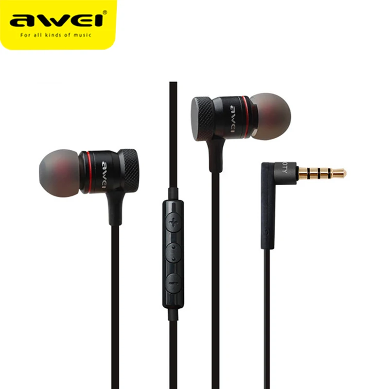 Awei ES-70TY проводные наушники-вкладыши, стерео гарнитура с микрофоном, металлические наушники-вкладыши с супер басами для iphone, Samsung, Xiaomi