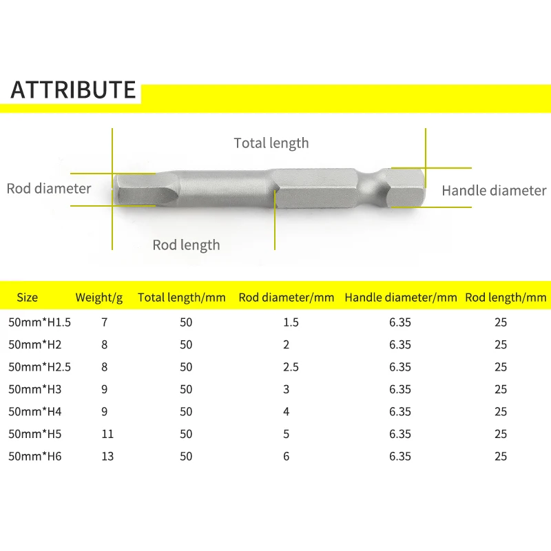 Набор насадок для отвертки с шестигранной головкой 50 мм, магнитные Электрические насадки, для электроинструмента H1.5 H2 H2.5 H3 H4 H5 H6