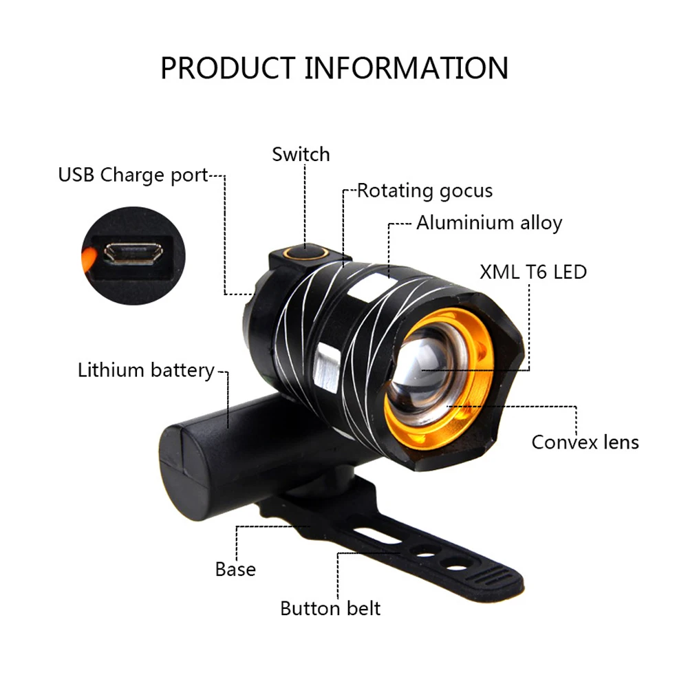 Водонепроницаемый светодиодный Передний фонарь T6 для горного велосипеда, налобсветильник фонарь дальнего действия с зарядкой через USB