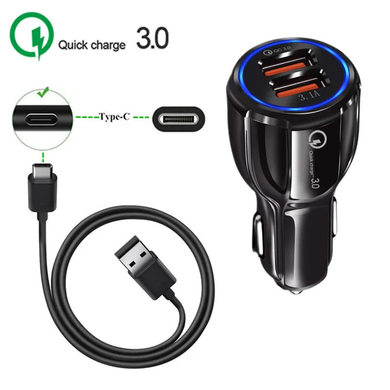 Быстрое зарядное устройство USB 3,0 для Xiaomi Mi 9 8 Redmi K20 Note 7 Pro, автомобильный адаптер и кабель Type-C для Samsung S8 A50 Honor 20 10 9