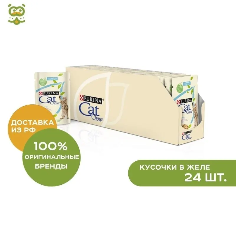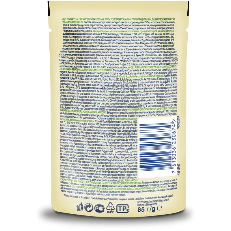 Cat Chow Kitten пауч для котят кусочки в желе, Индейка, кабачок (0,085 кг * 24 шт)