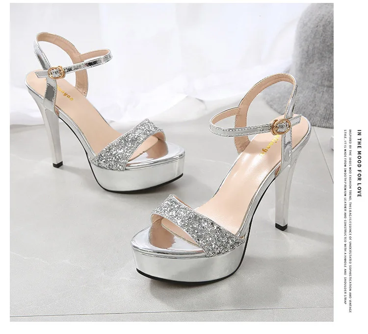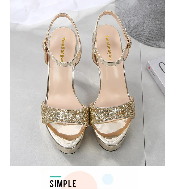 Сандалии женские на высоком каблуке, босоножки на платформе, свадебная обувь с украшениями, золотистые