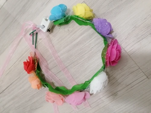 Очень бледные цветы, края эт ой гирлянды - просто голая проволока. Внешне напоминает маленький венок для кладбища. Правда, когда включаешь подсветку, смотрится гораздо лучше. За такие деньги товар вполне приемлим, Покупал для 5-тилетней внучки. Она довольна, а это самое главное.