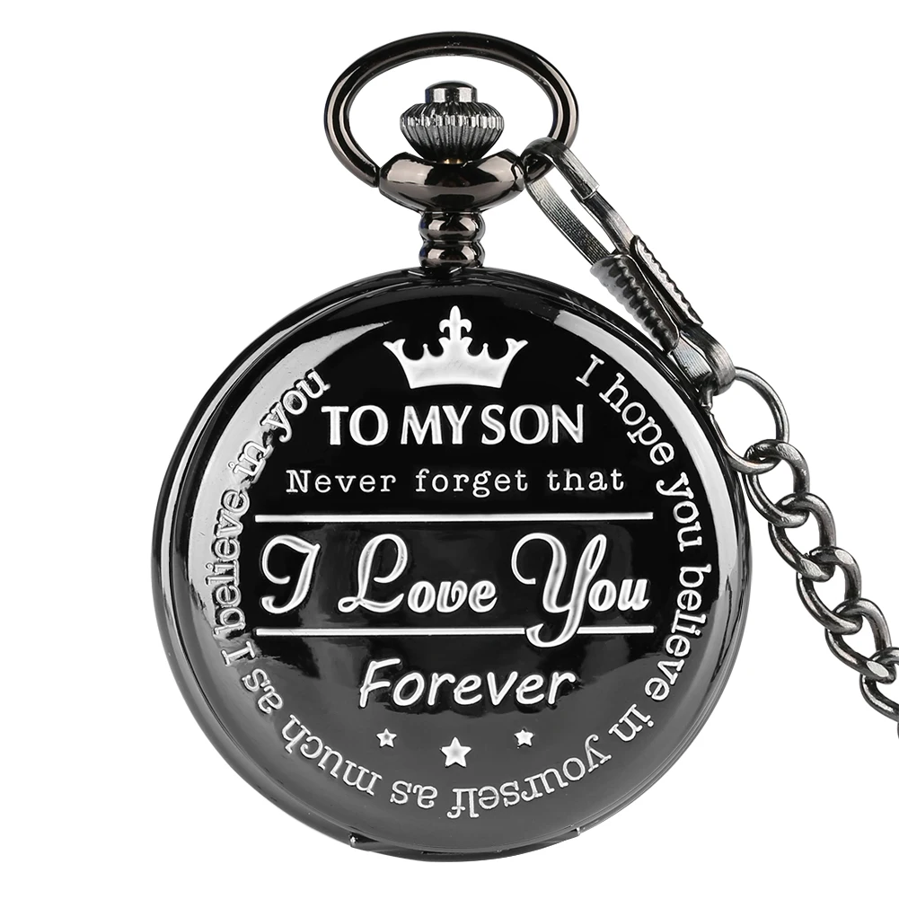 Мужские карманные часы, часы с подвеской, "To MY SON", серия лазерных слов, часы для мальчиков, изысканные благородные звенья цепи