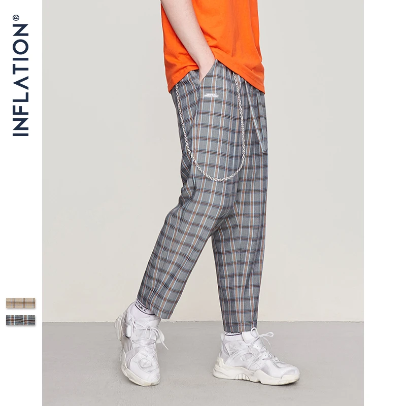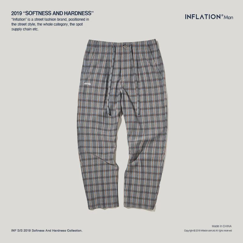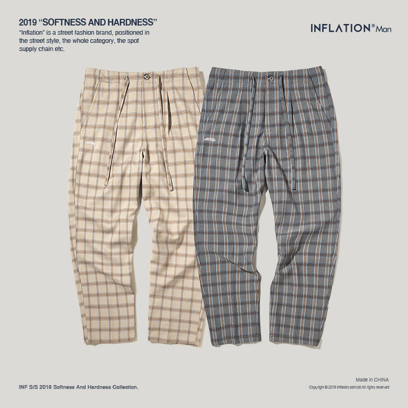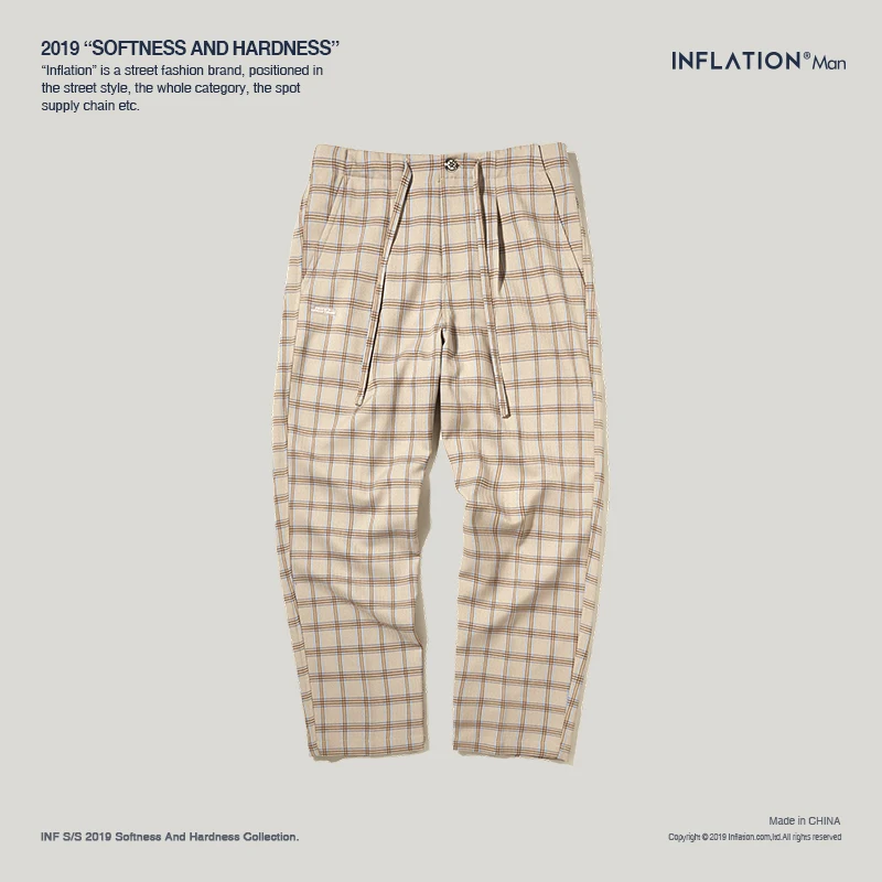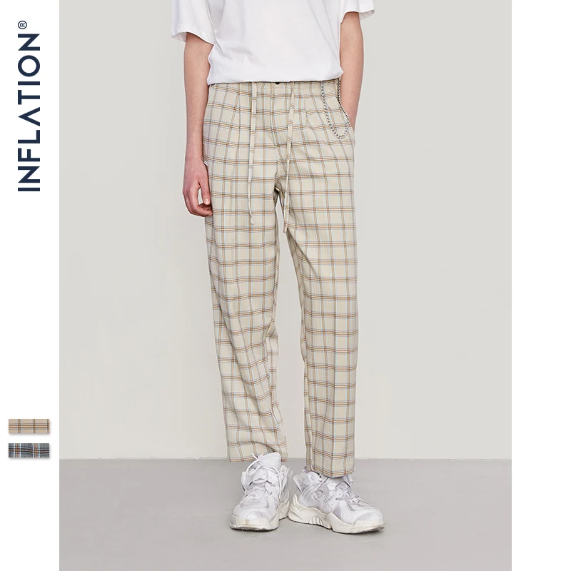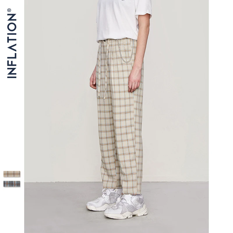 INFLATION 2020 осень зима уличная мода ретро клетчатые брюки прямые брюки с эластичным поясом 93315W