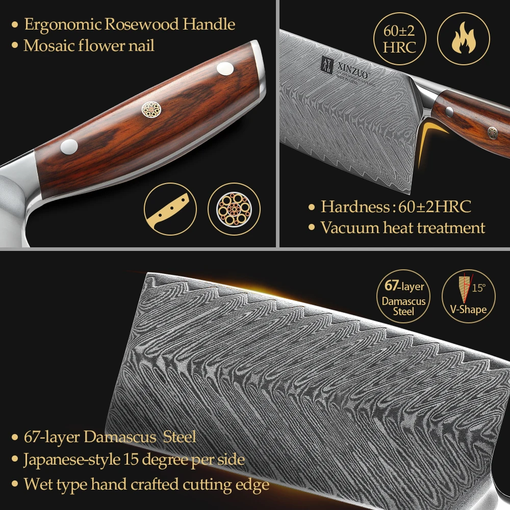 XINZUO 7 дюймов нож для мяса из нержавеющей стали VG10 Дамасские инструменты для приготовления пищи Кливер лучший подарок ножи Палисандр Ручка