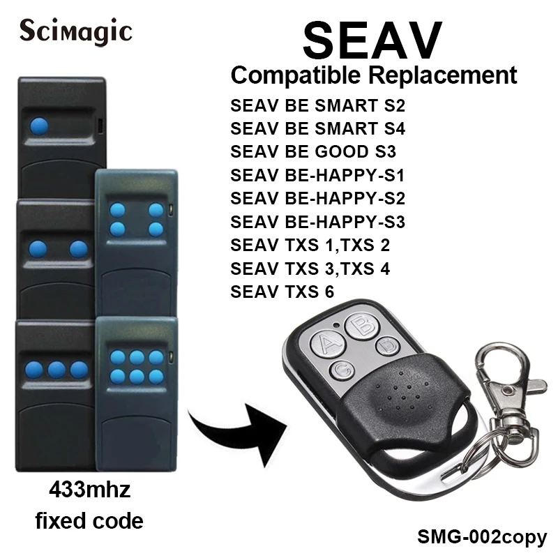 Дубликатор дистанционного управления SEAV TXS 1, 2, 3, 4, 6, 433,92 МГц, SEAV BE HAPPY S1,HAPPY S3,BE SMART S2, командный передатчик