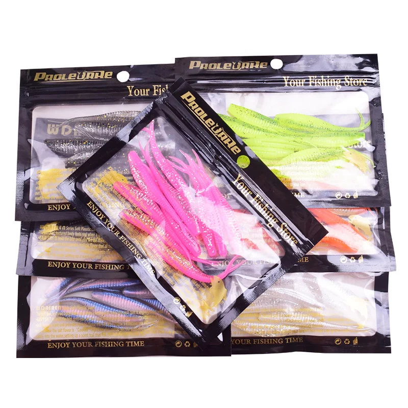10 шт. джиг воблеры Мягкая приманка червяк 7 см 1,8 г Easy Shiner от Золото Серебро силиконовые блестки Рыболовные Приманки вилка хвост Swimbait личинка рыболовные снасти