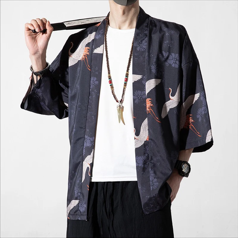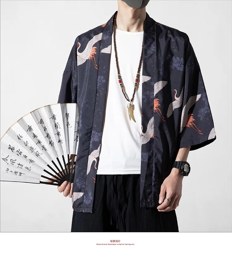 Кимоно мужское в китайском стиле, юката, свободный халат в японском стиле, хаори, литературное японское короткое, 5XL