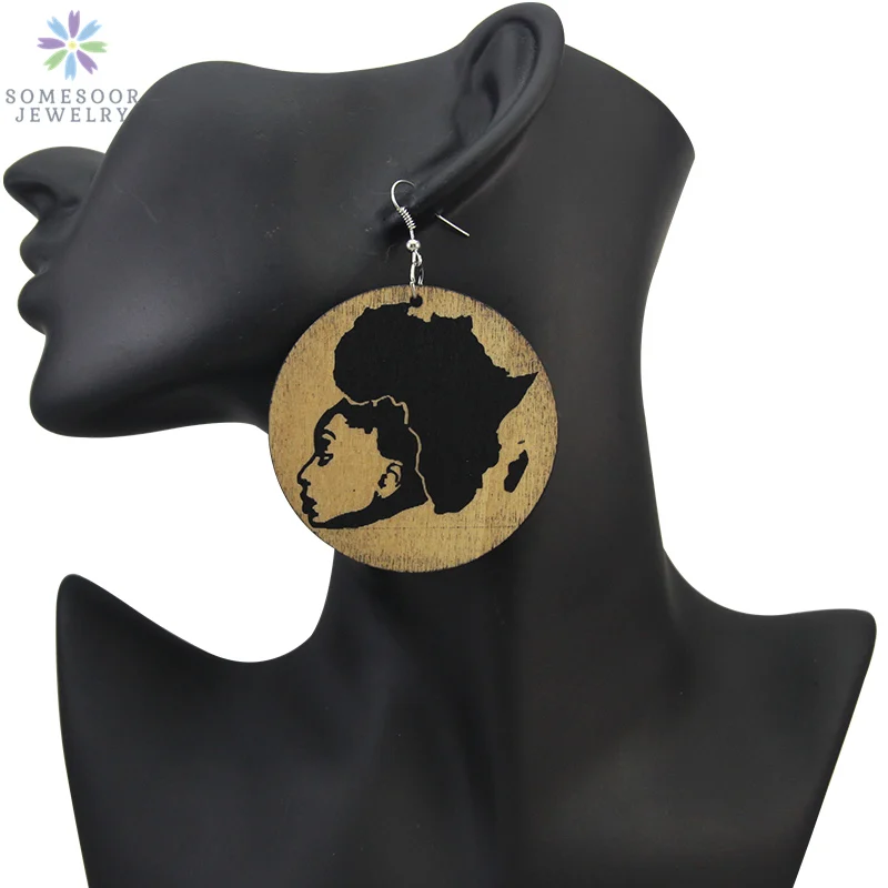 SOMESOOR гравировка африканские деревянные висячие серьги меланин В...