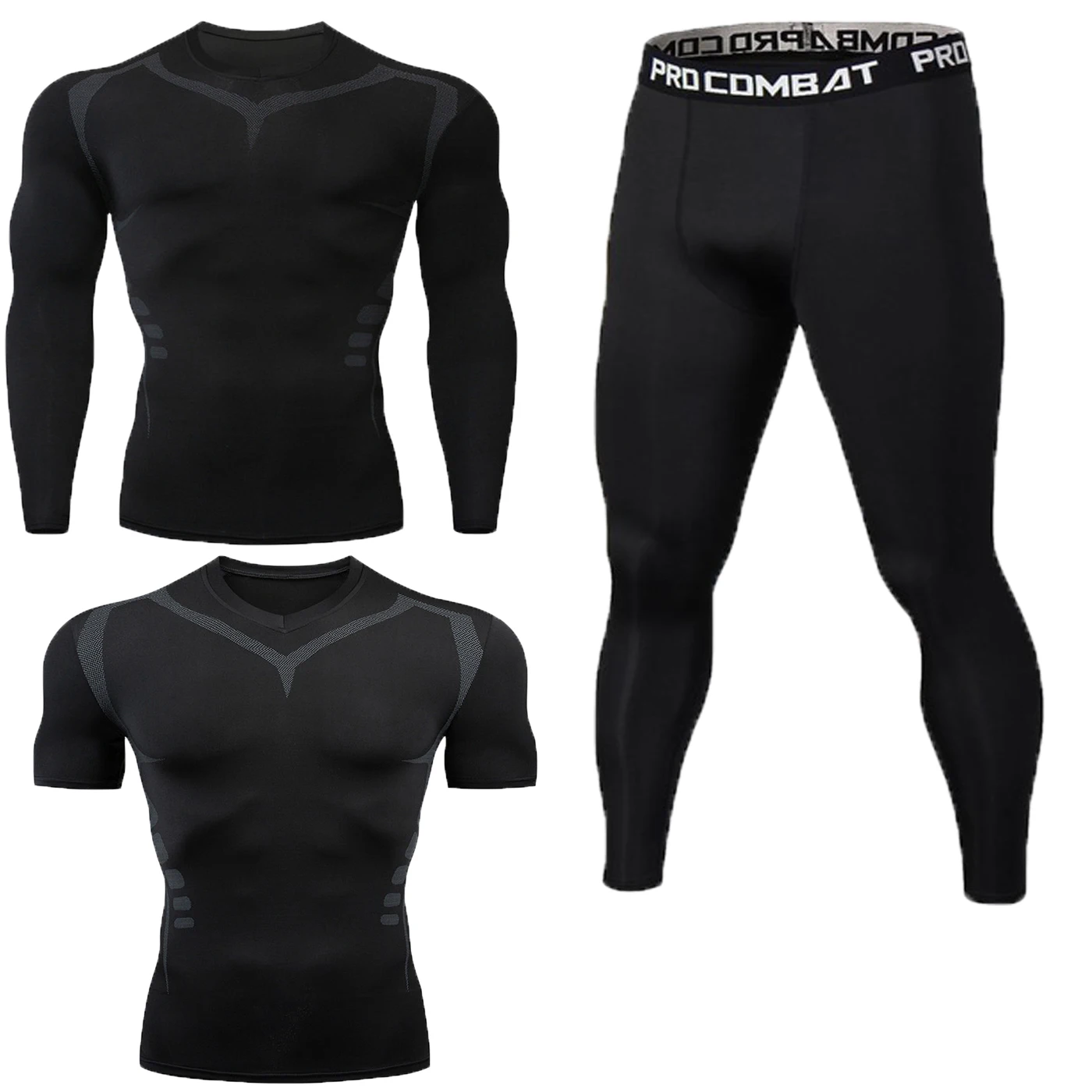 Новый Фитнес мужской комплект чистый черный компрессионный топ + леггинсы нижнее белье Crossfit с длинным рукавом + футболка с коротким рукавом комплект одежды