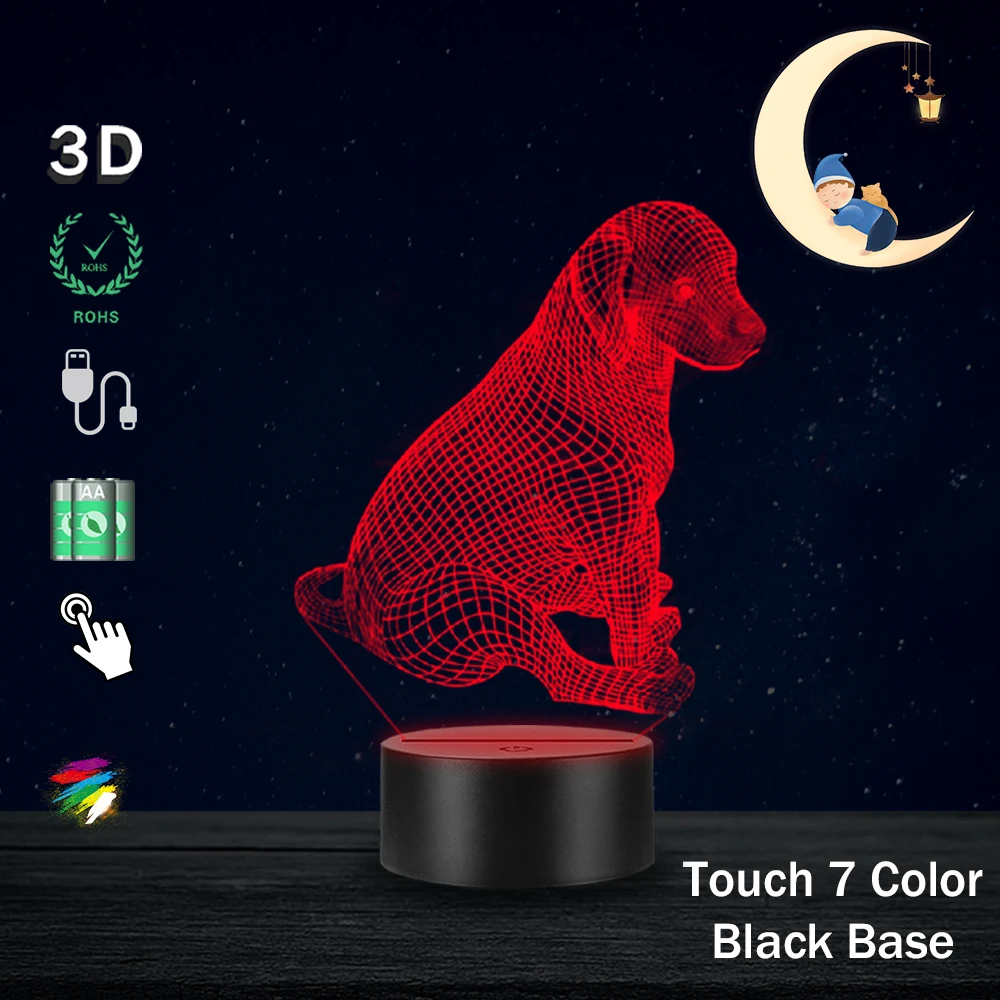 Милый Лабрадор ретривер собака 3D лампа Иллюзия ночсветильник Светодиодная лампа многоцветная вспышка исчезает рождественские подарки для детей детская игрушка